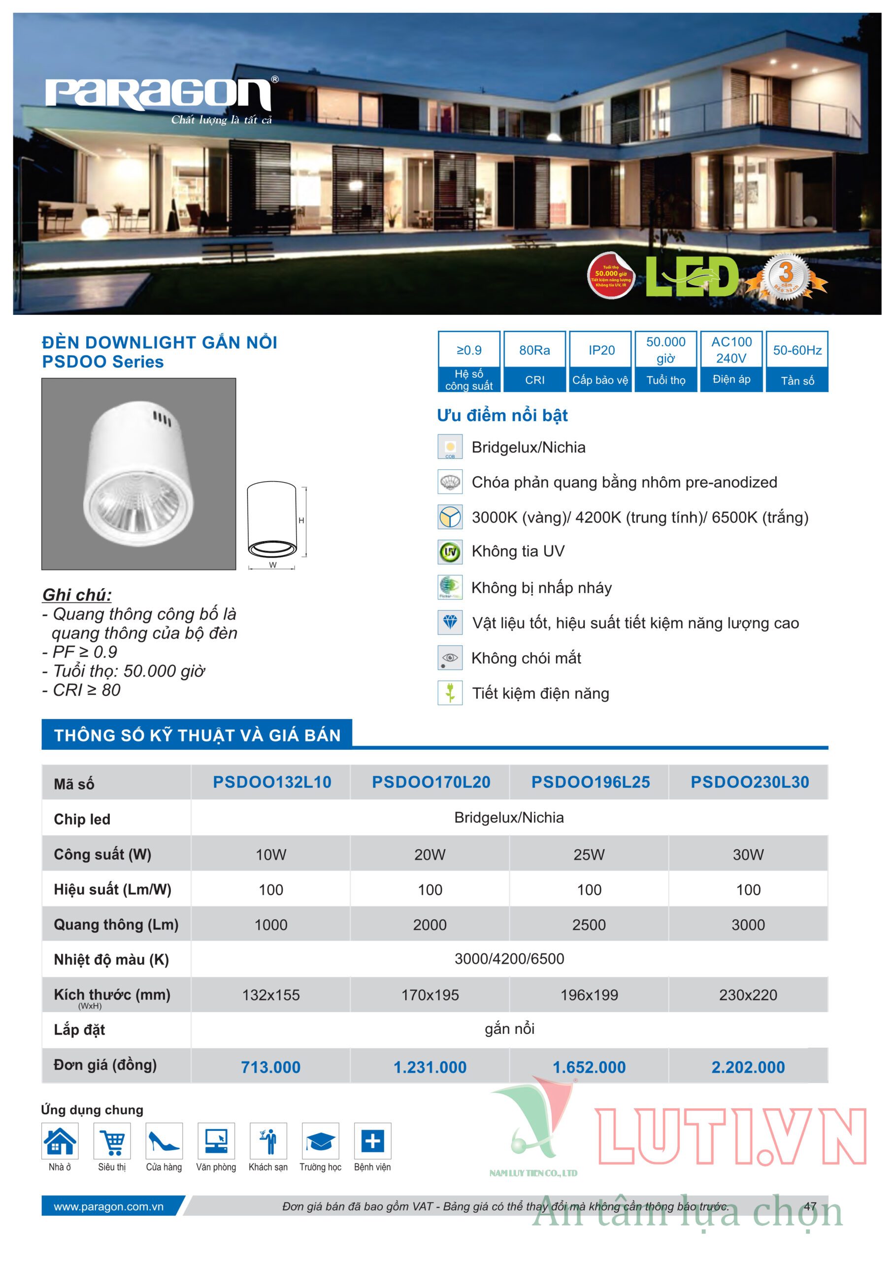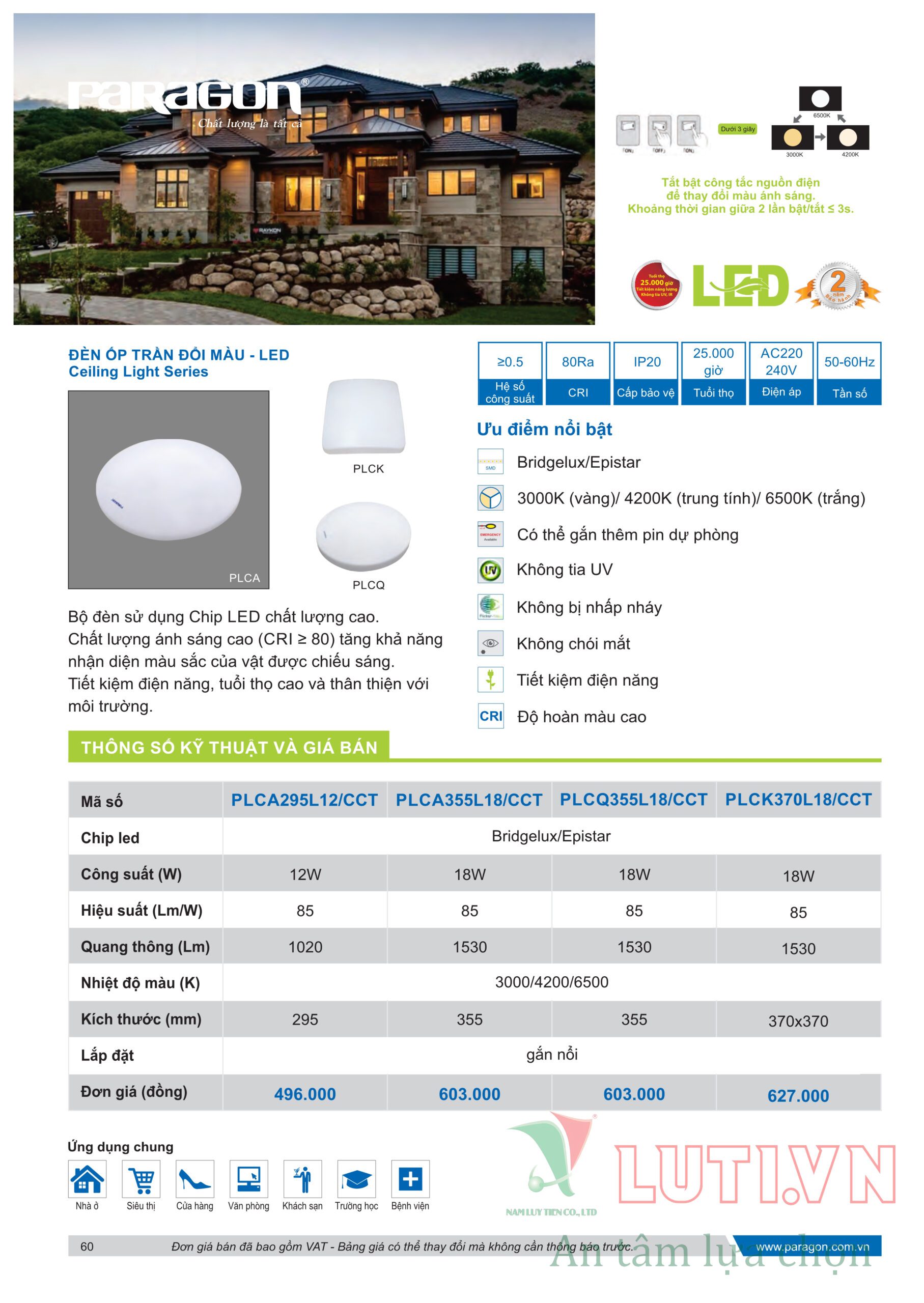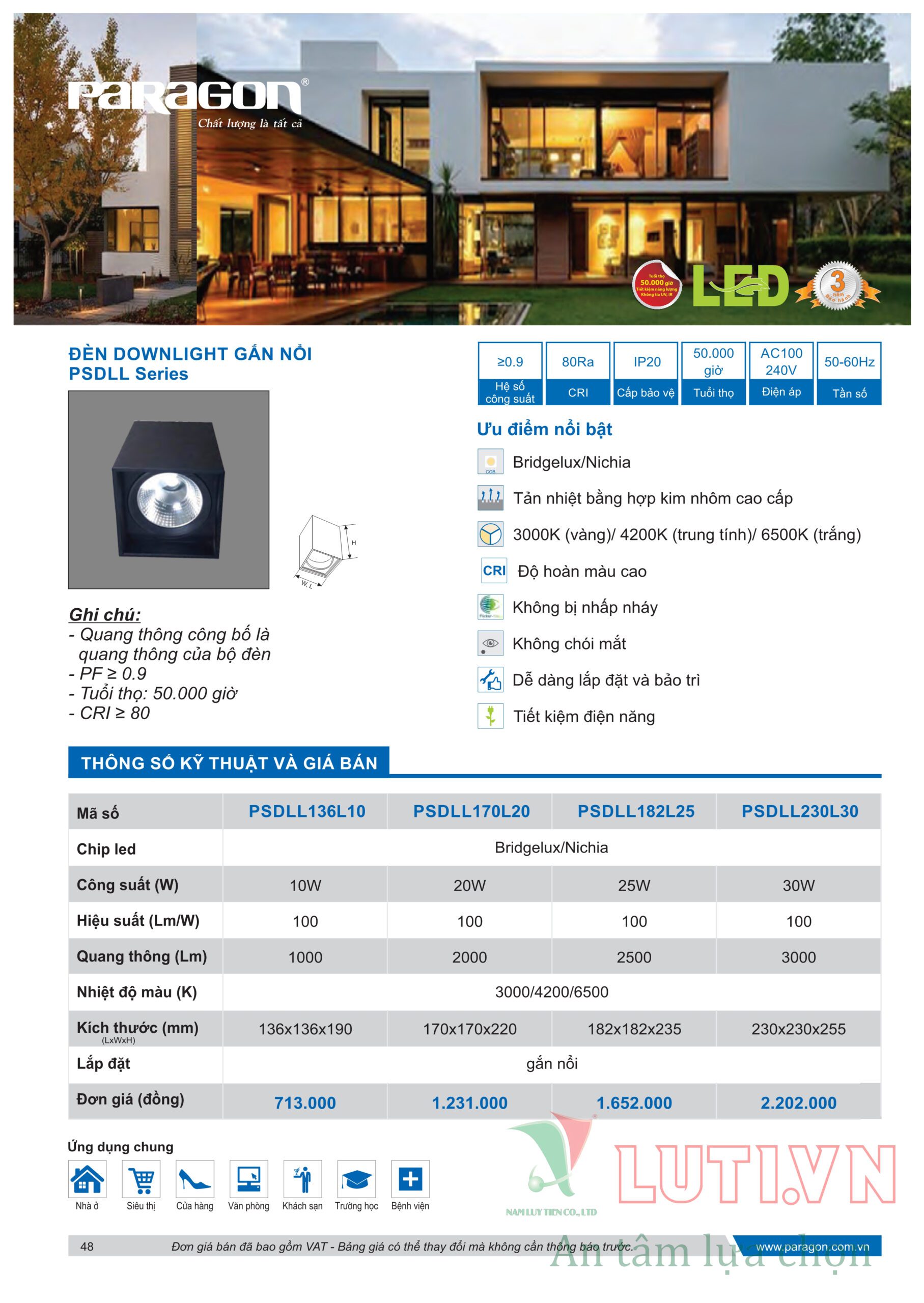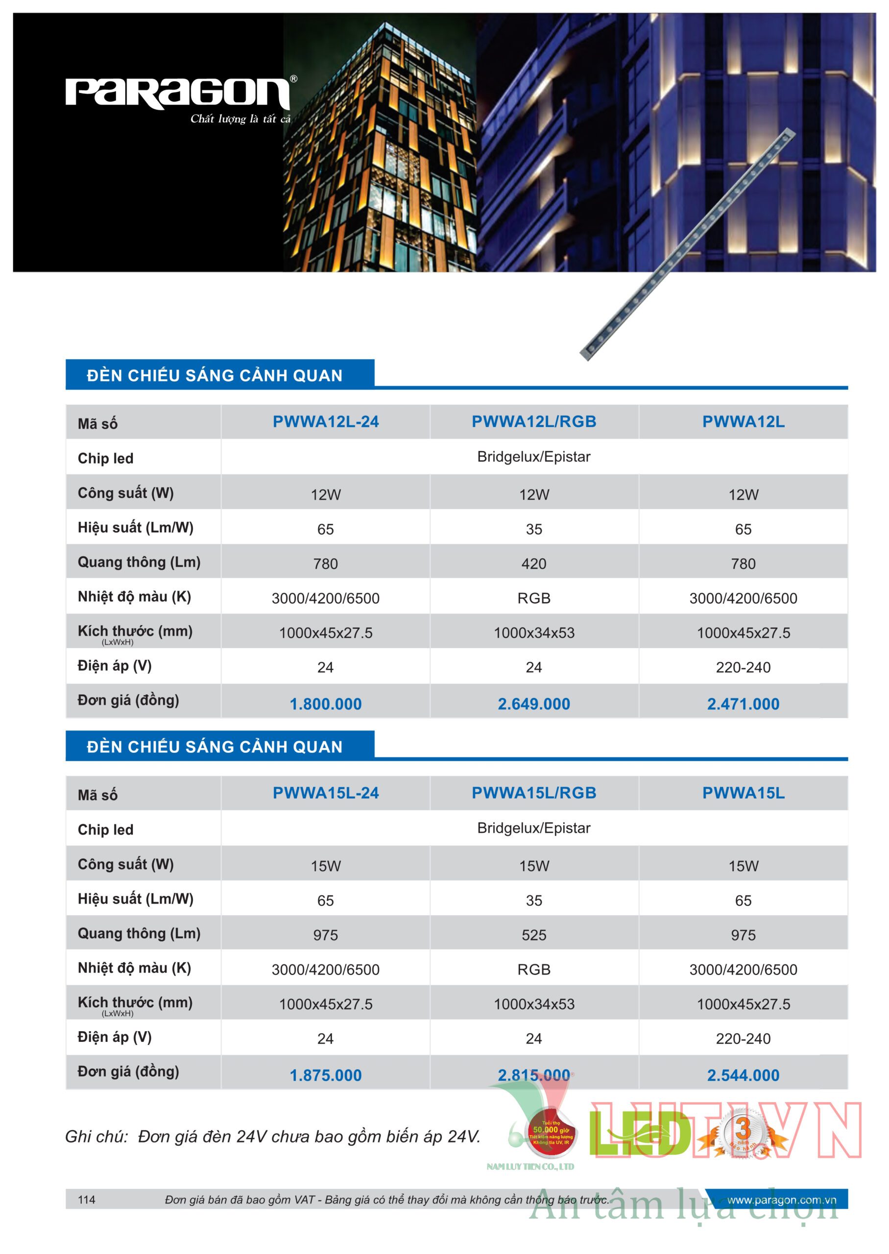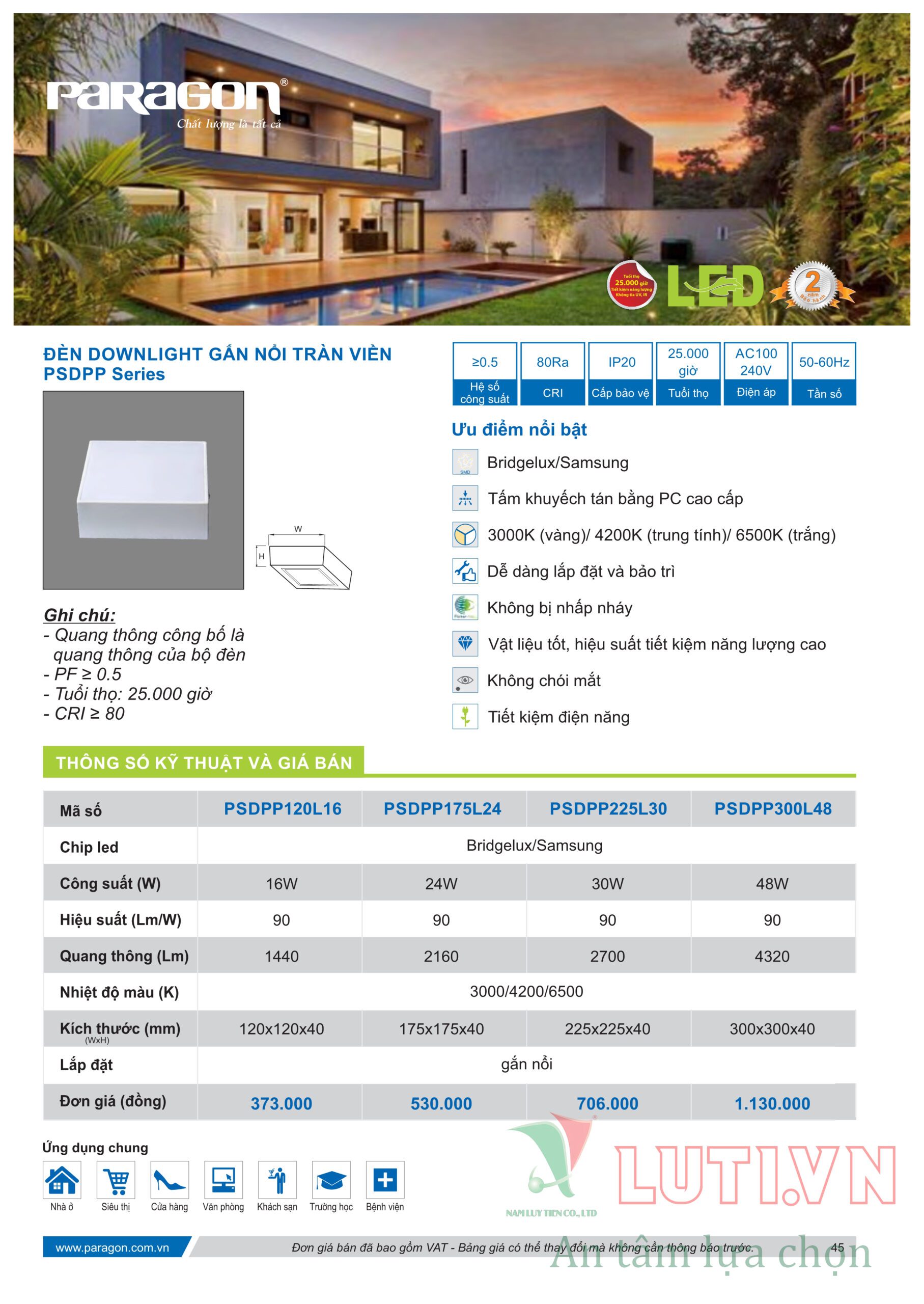 Catalogue - Bảng giáCATALOGUE BẢNG GIÁ ĐÈN LED PARAGON NĂM 2023 Công ty TNHH Nam Luỹ Tiến trân trọng gởi đến Quý khách hàng Catalogue Bảng giá đèn led PARAGON mới nhất năm 2023. Hân hạnh được phục vụ!