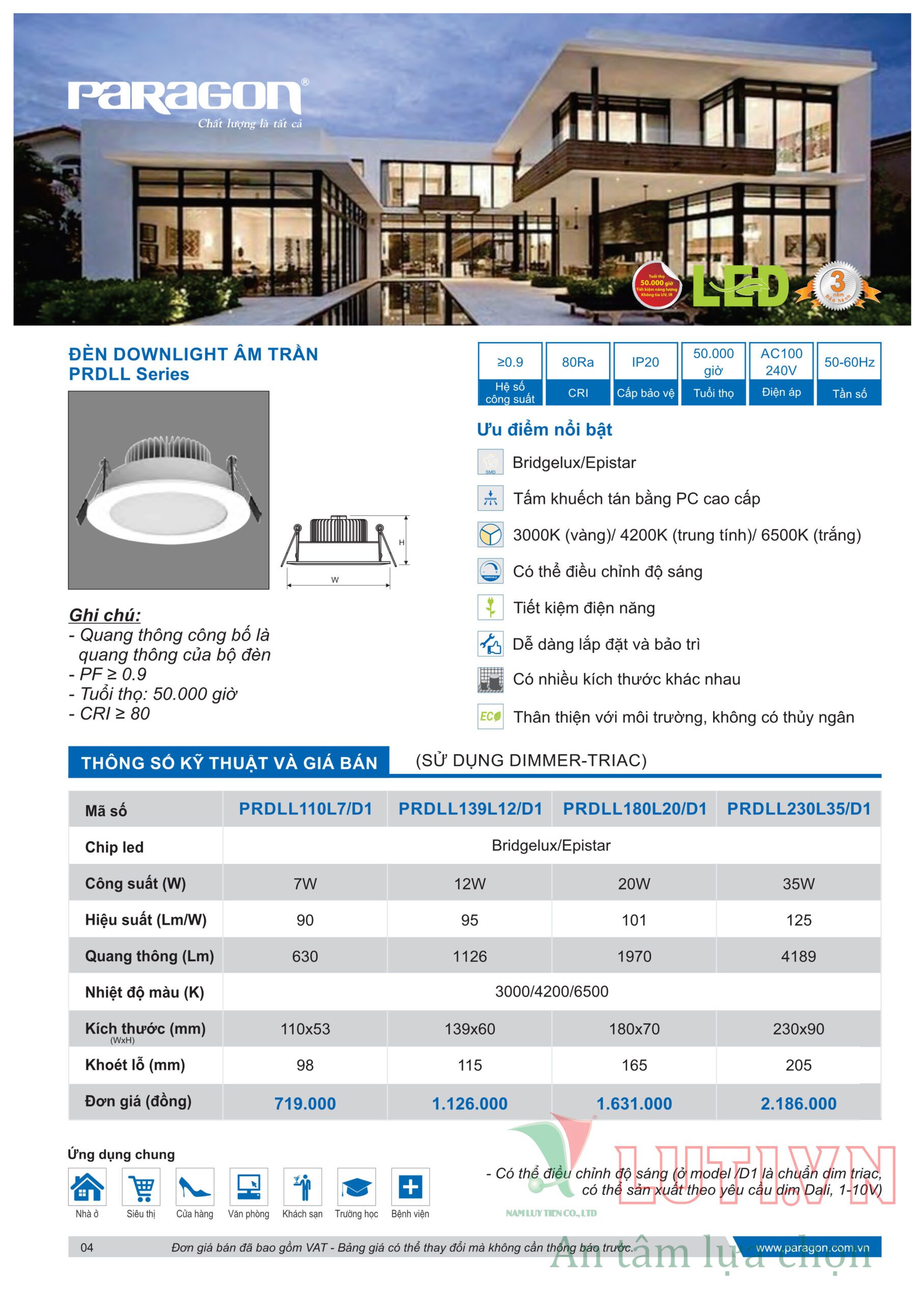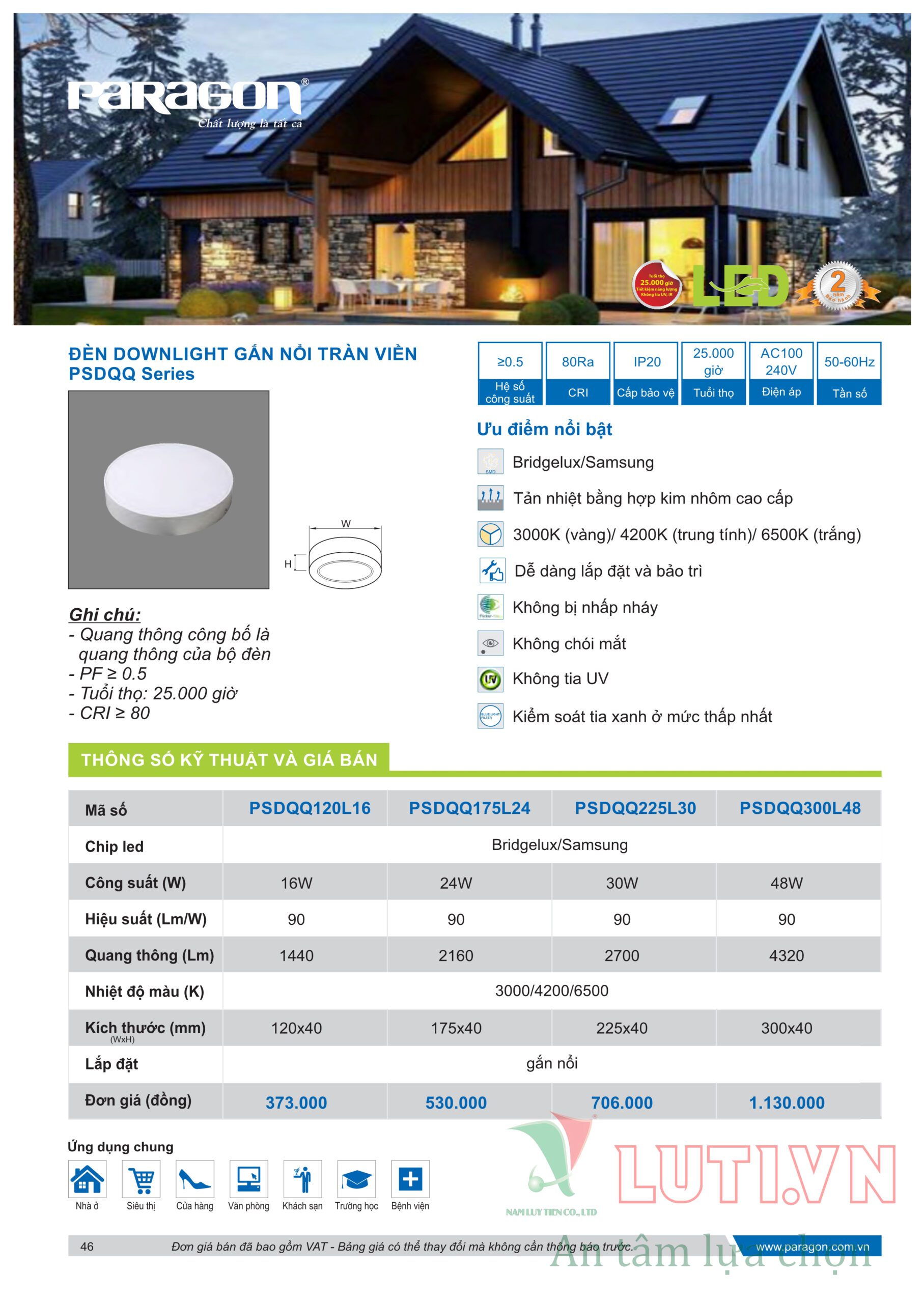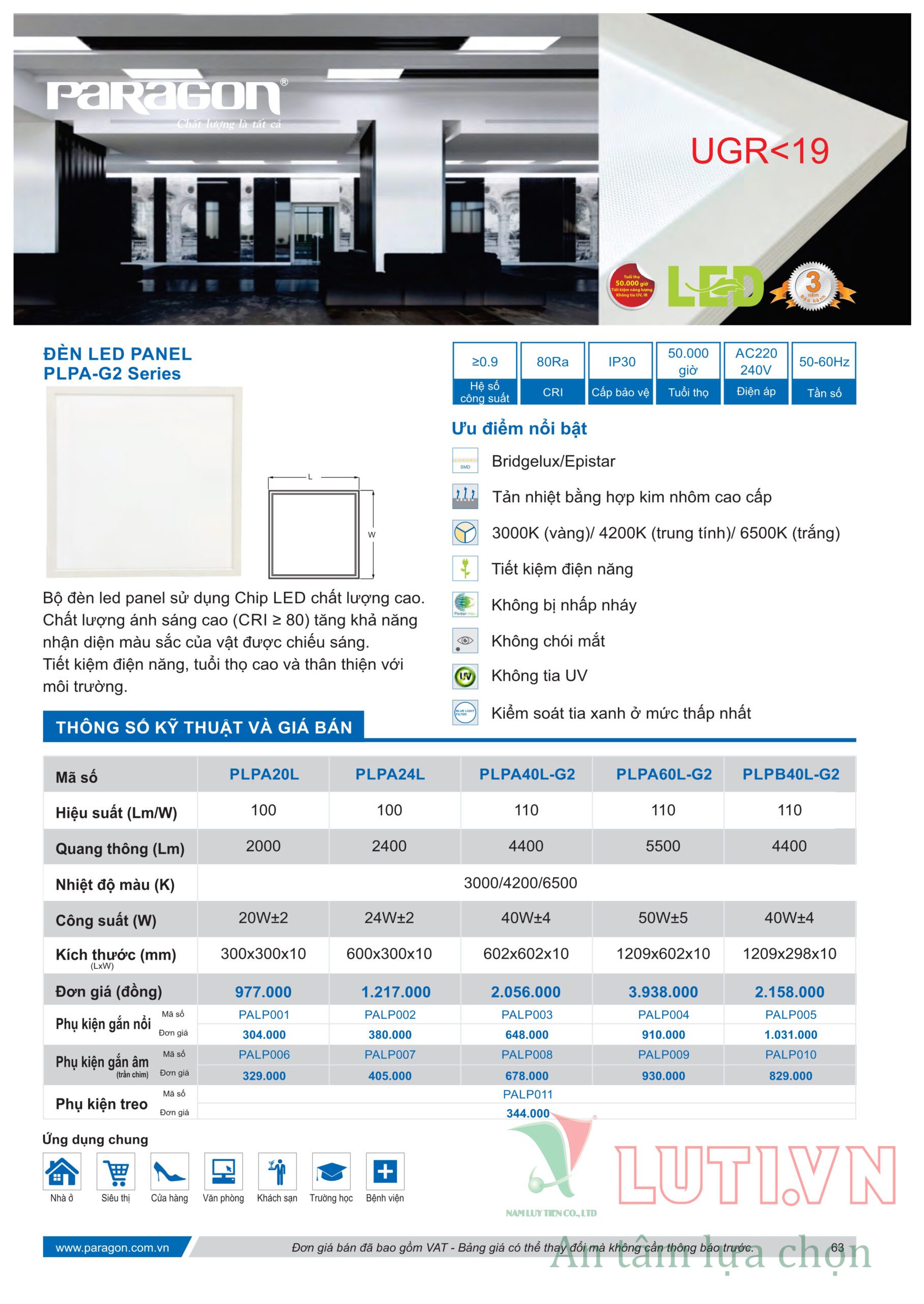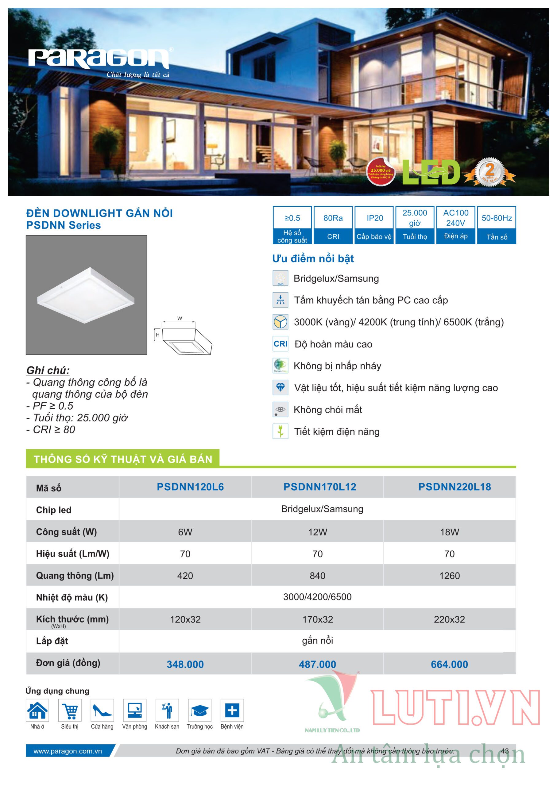 Catalogue - Bảng giáCATALOGUE BẢNG GIÁ ĐÈN LED PARAGON NĂM 2023 Công ty TNHH Nam Luỹ Tiến trân trọng gởi đến Quý khách hàng Catalogue Bảng giá đèn led PARAGON mới nhất năm 2023. Hân hạnh được phục vụ!