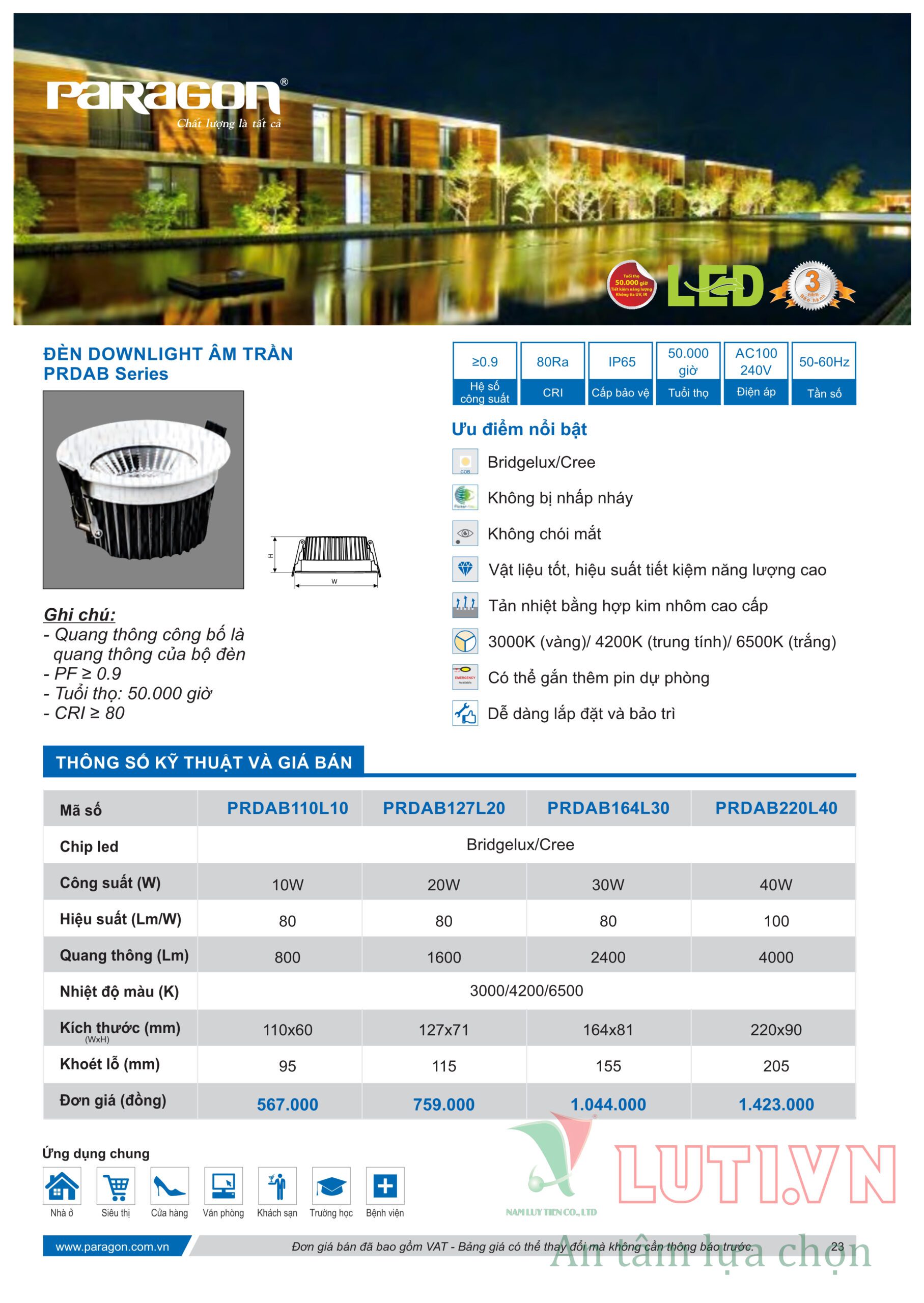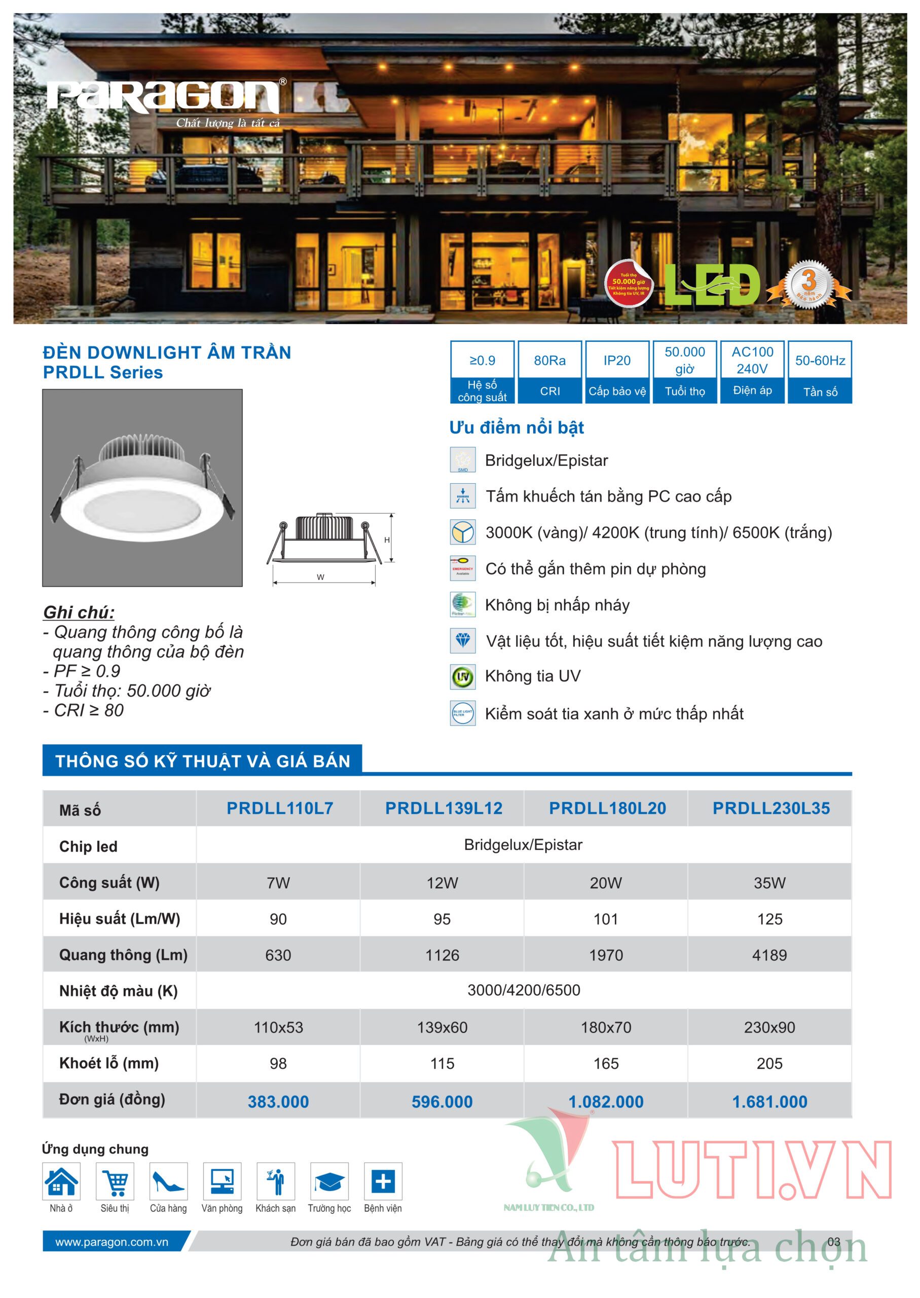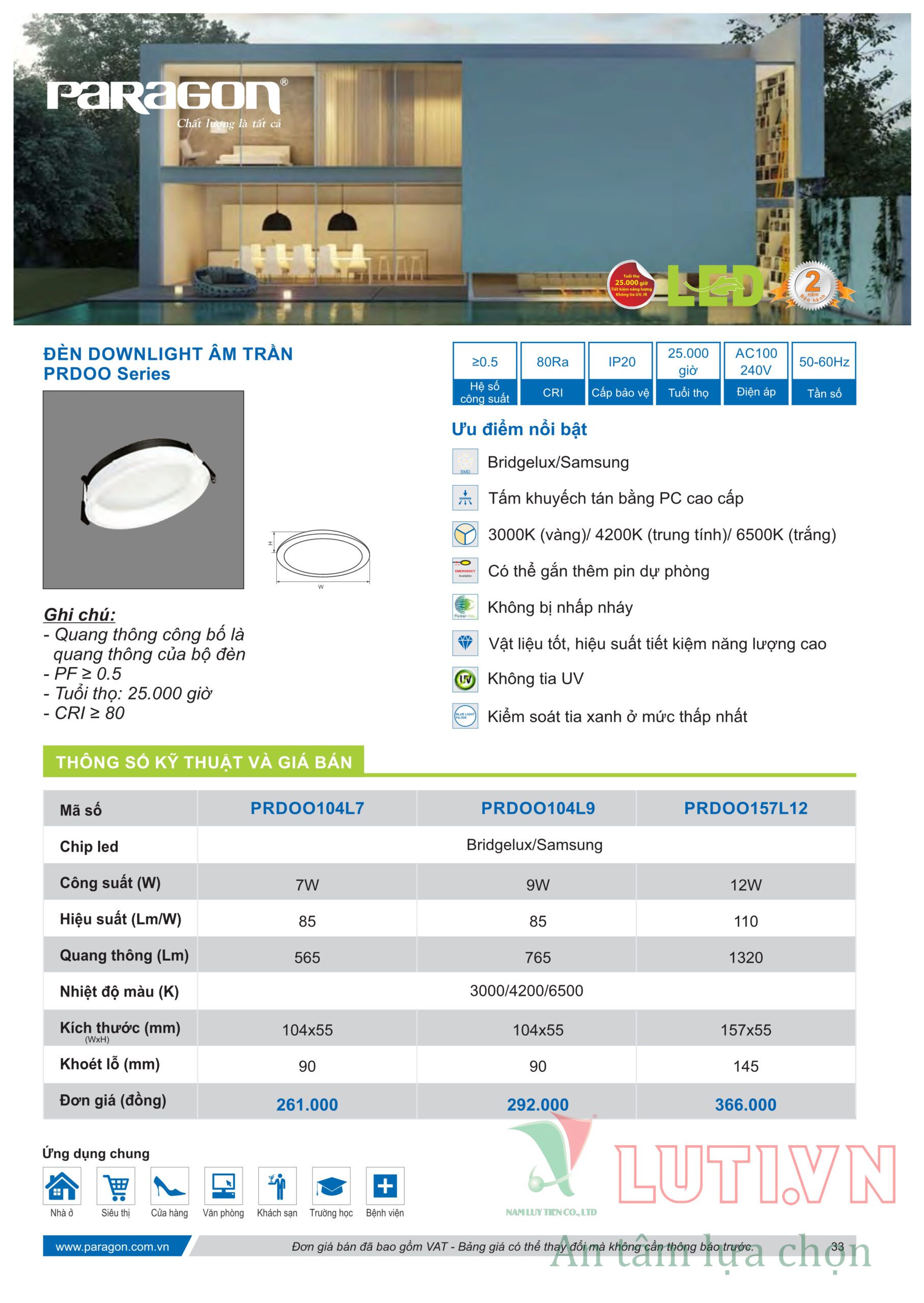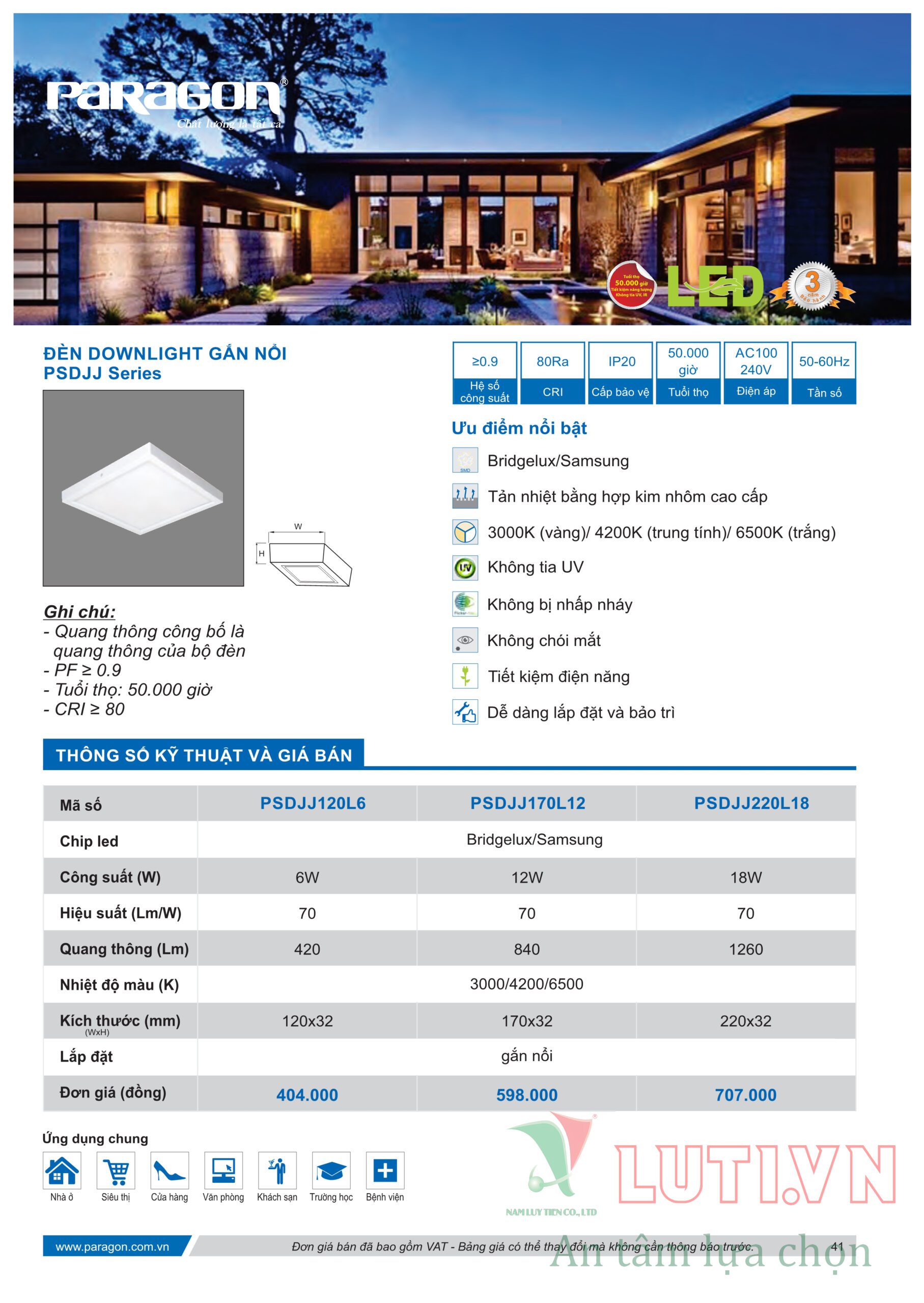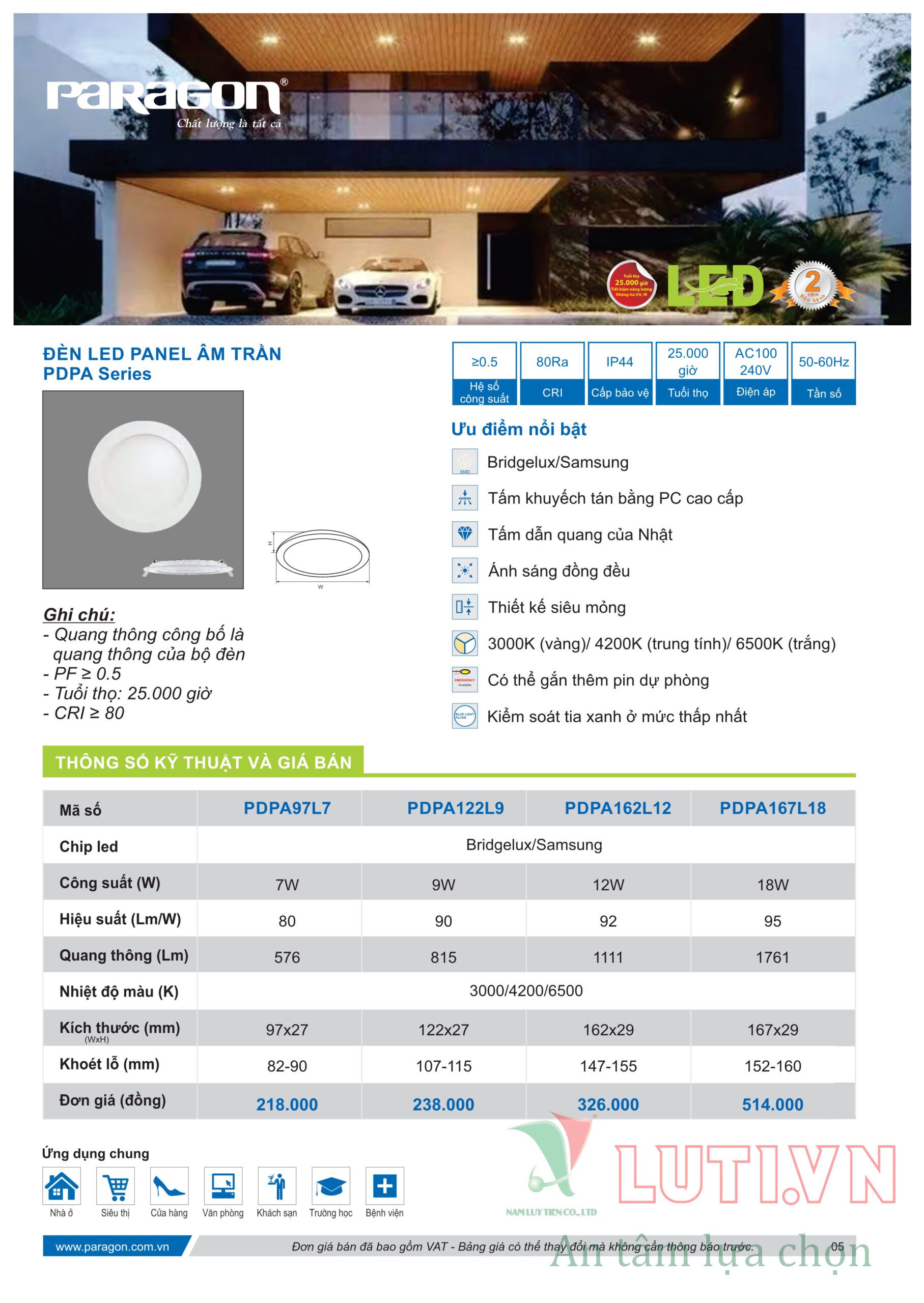Catalogue - Bảng giáCATALOGUE BẢNG GIÁ ĐÈN LED PARAGON NĂM 2023 Công ty TNHH Nam Luỹ Tiến trân trọng gởi đến Quý khách hàng Catalogue Bảng giá đèn led PARAGON mới nhất năm 2023. Hân hạnh được phục vụ!