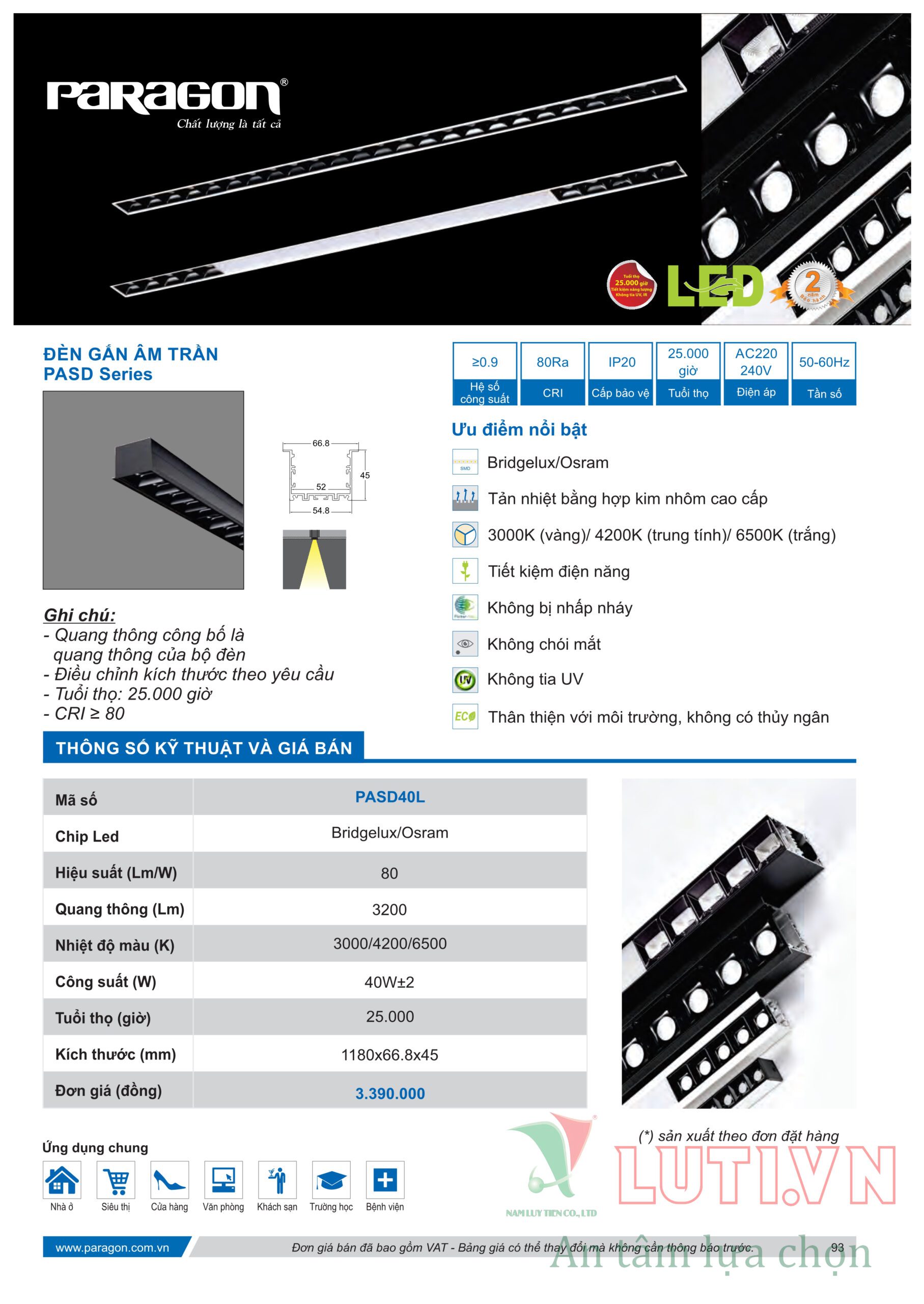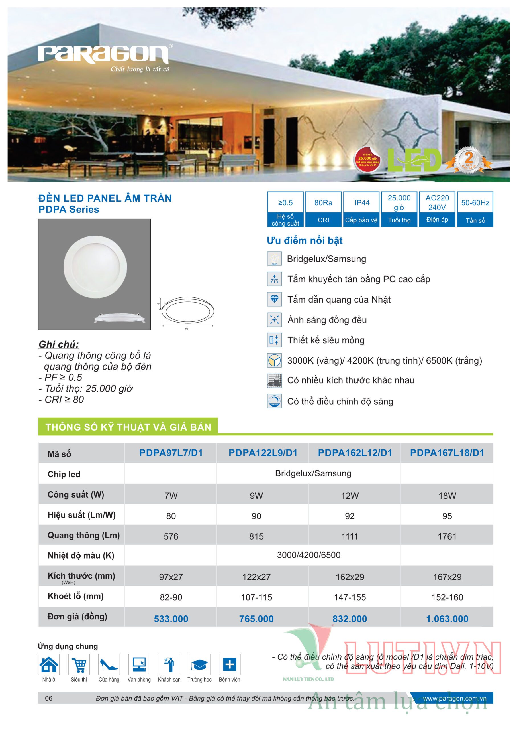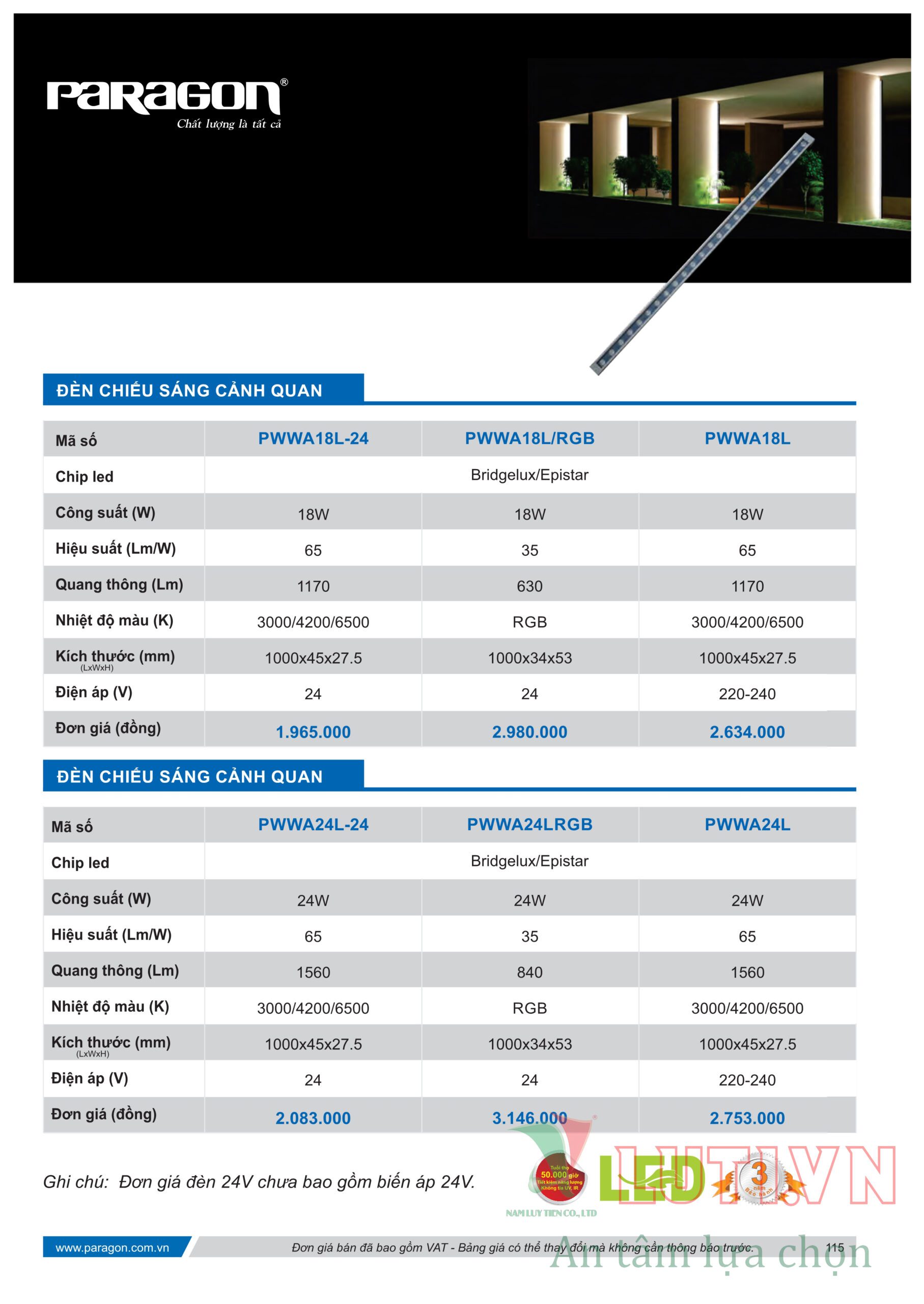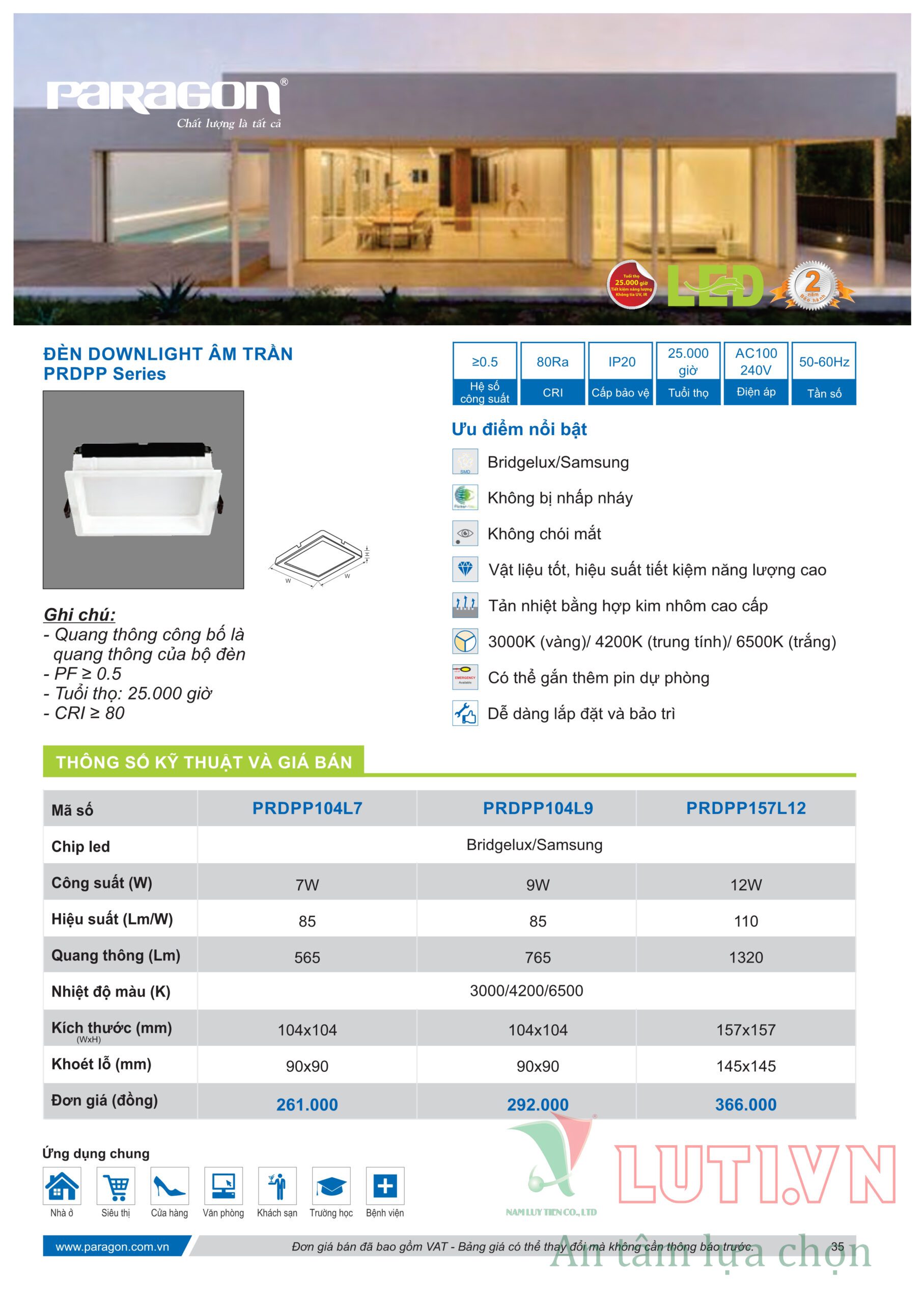 Catalogue - Bảng giáCATALOGUE BẢNG GIÁ ĐÈN LED PARAGON NĂM 2023 Công ty TNHH Nam Luỹ Tiến trân trọng gởi đến Quý khách hàng Catalogue Bảng giá đèn led PARAGON mới nhất năm 2023. Hân hạnh được phục vụ!