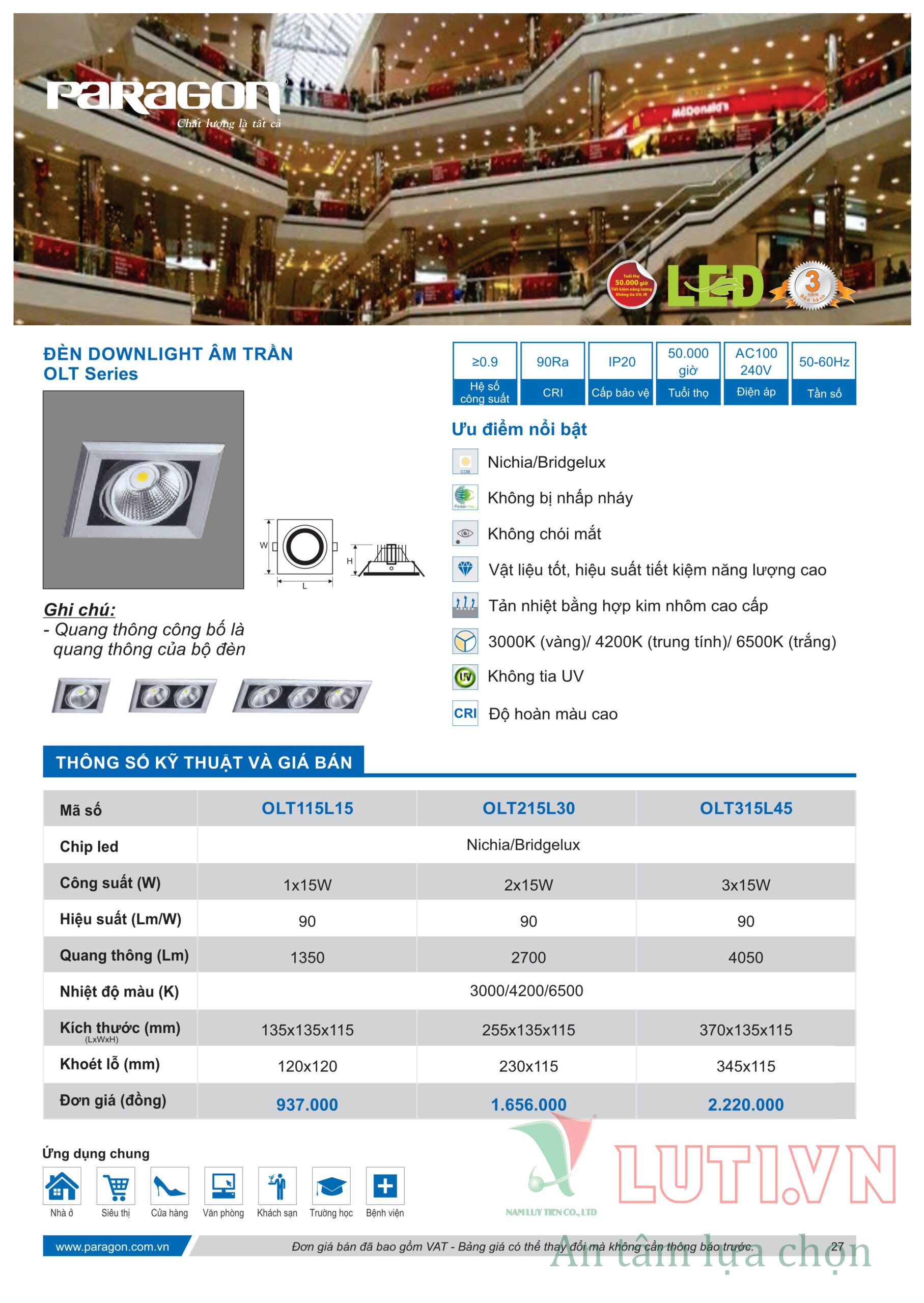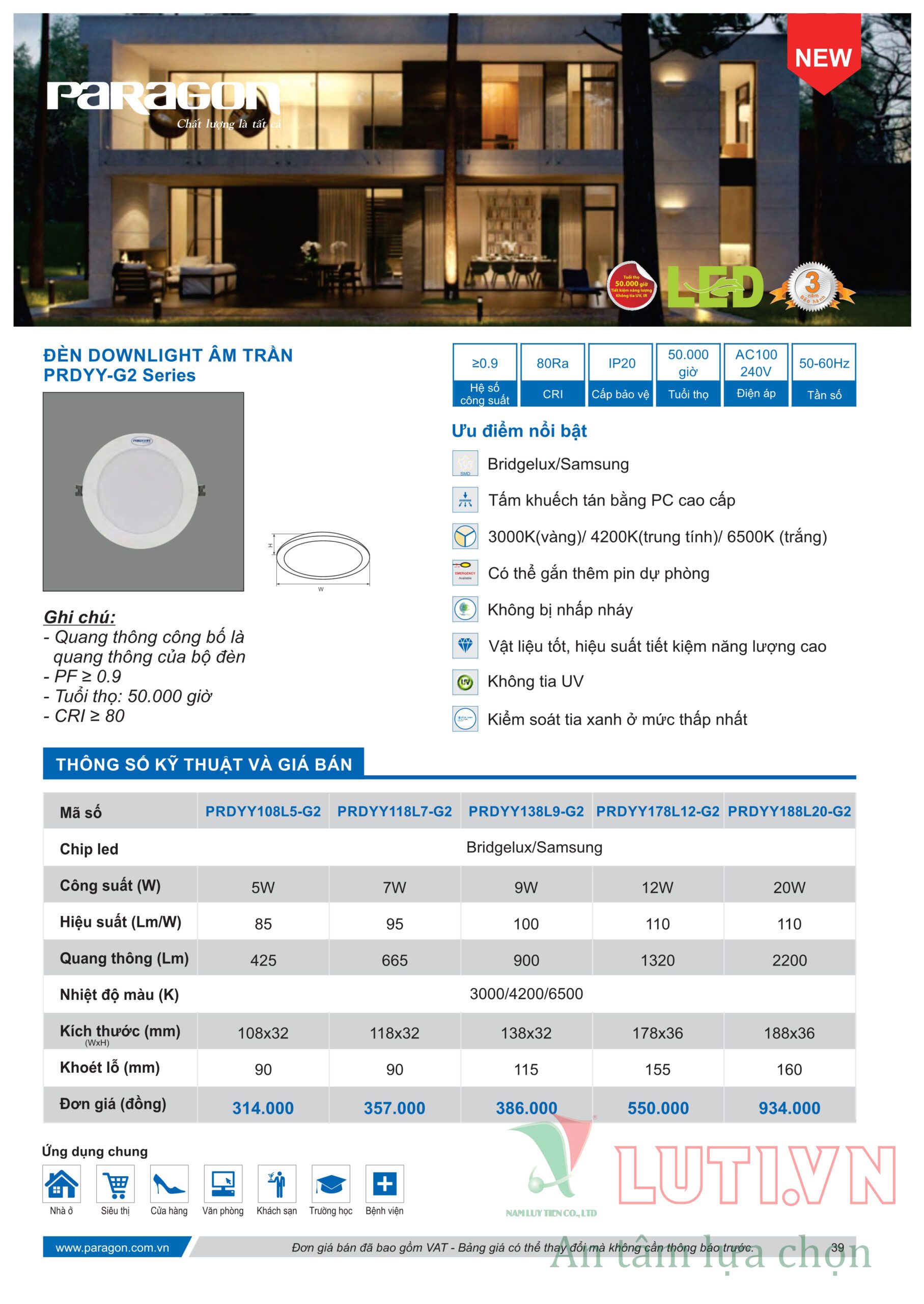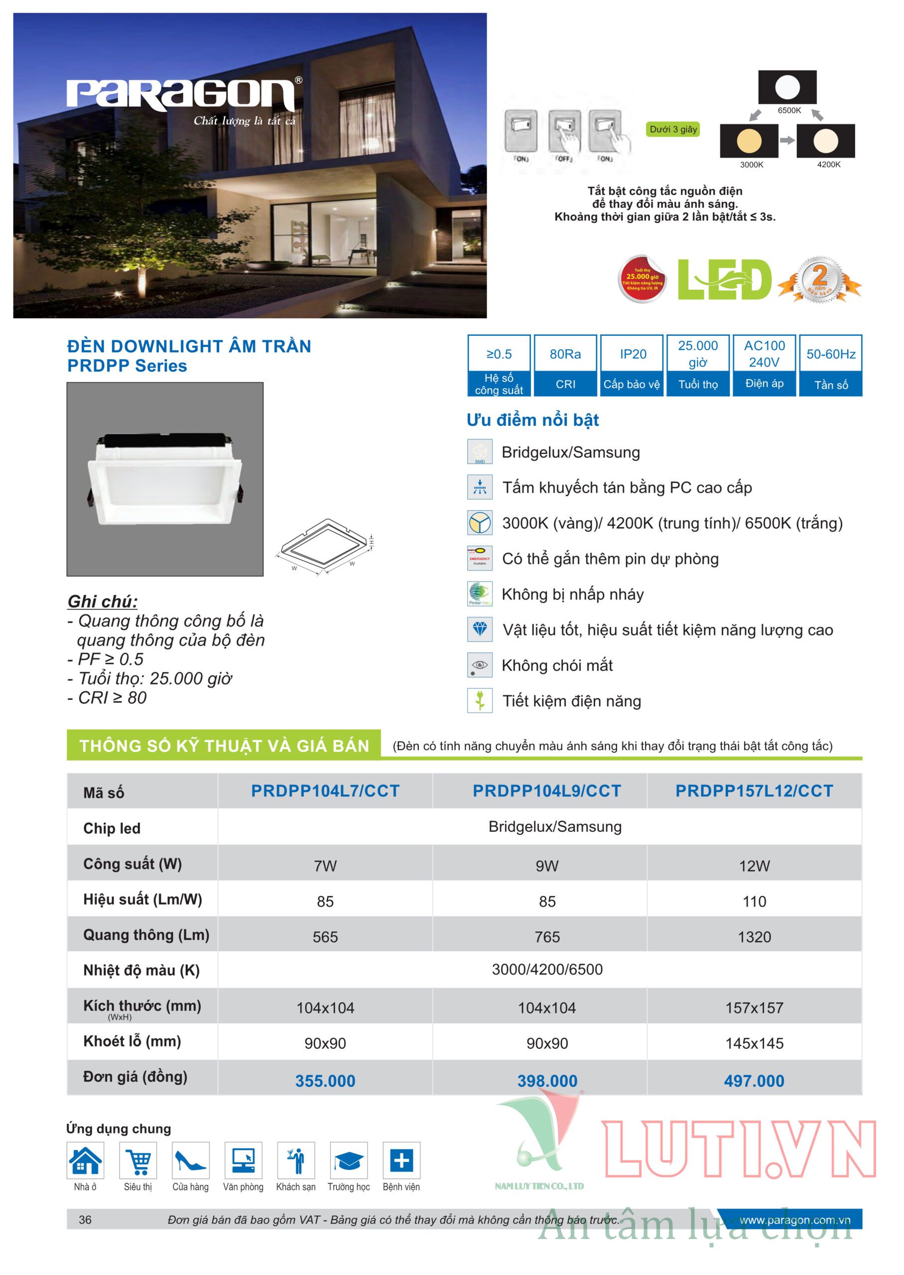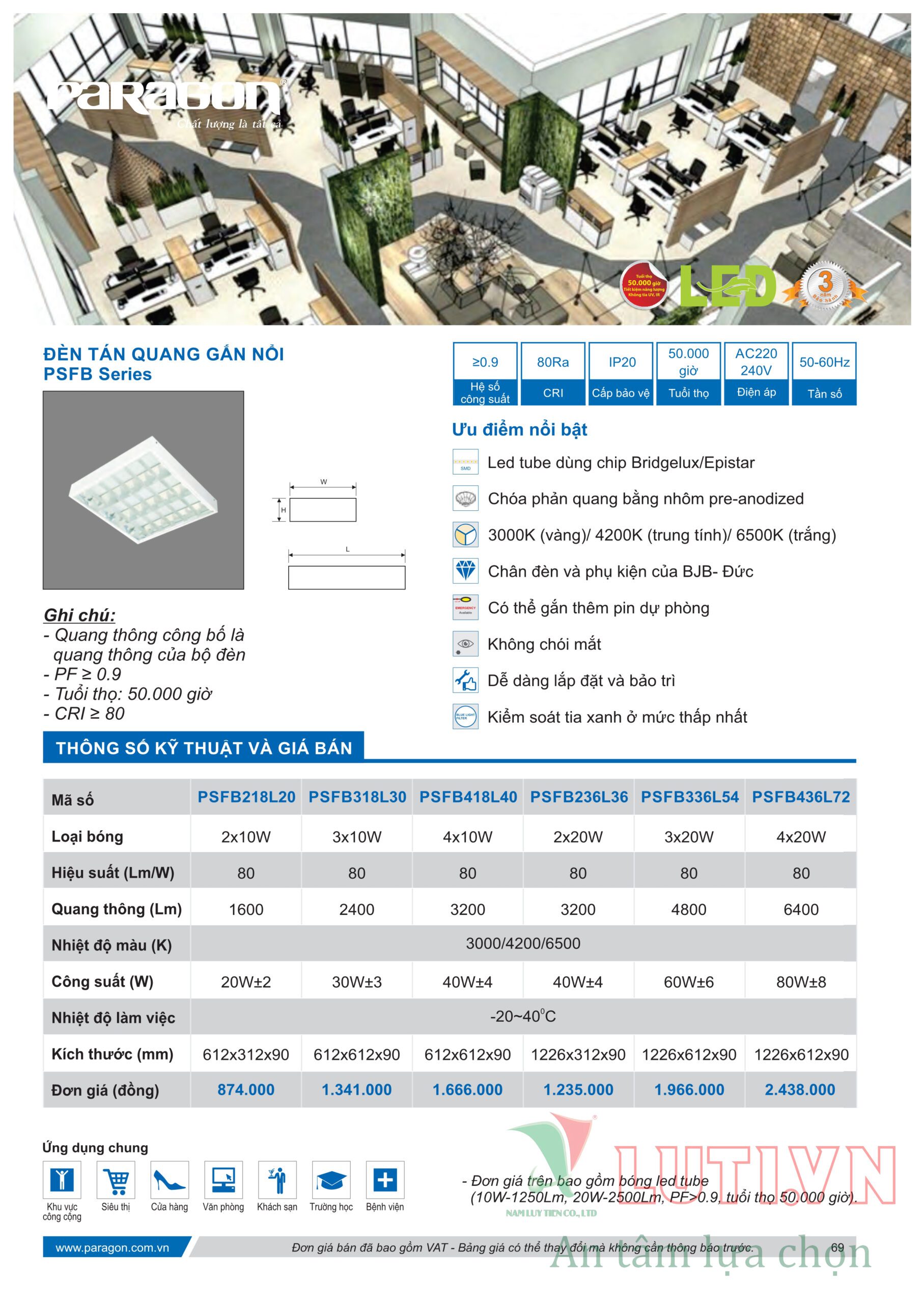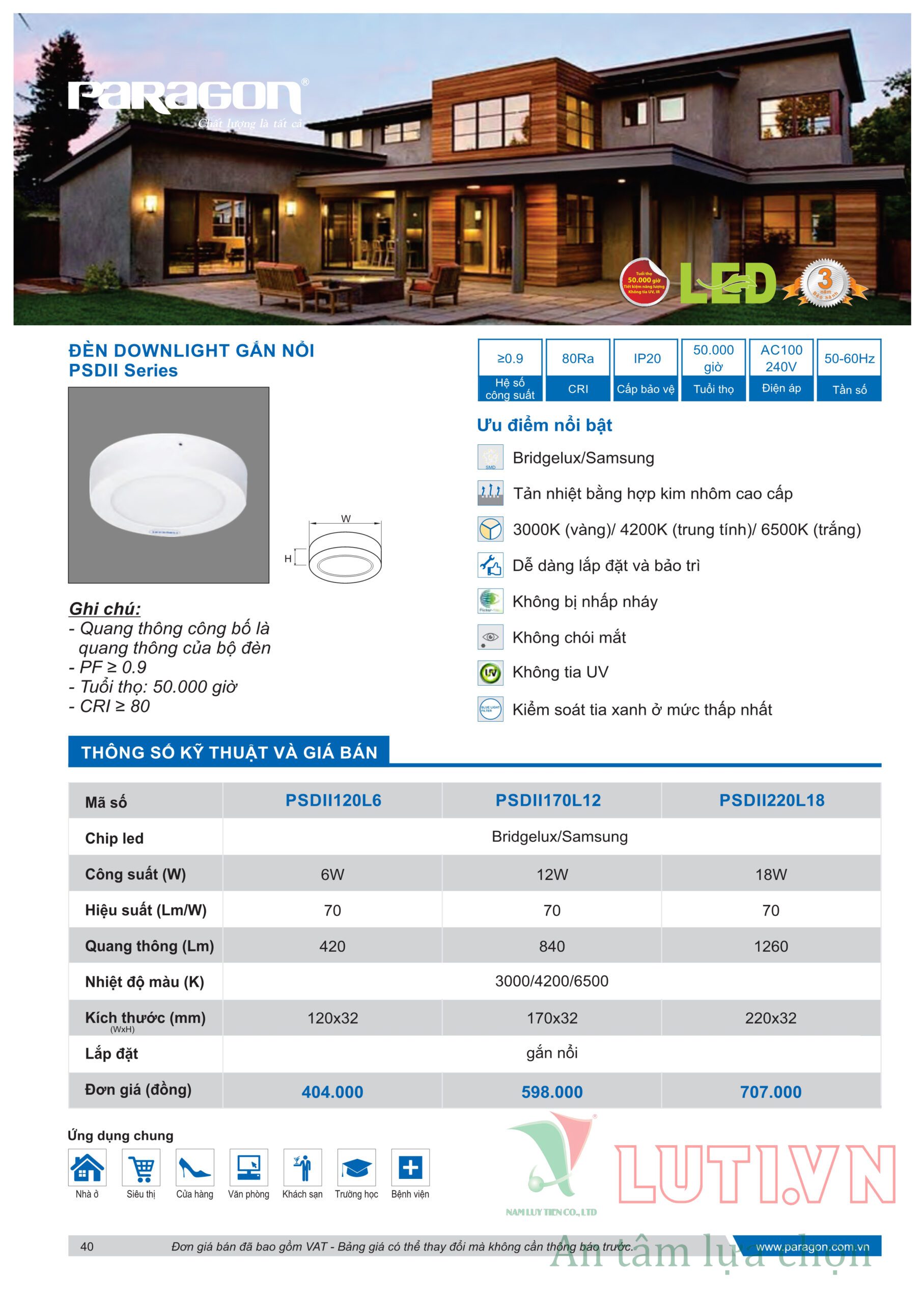 Catalogue - Bảng giáCATALOGUE BẢNG GIÁ ĐÈN LED PARAGON NĂM 2023 Công ty TNHH Nam Luỹ Tiến trân trọng gởi đến Quý khách hàng Catalogue Bảng giá đèn led PARAGON mới nhất năm 2023. Hân hạnh được phục vụ!