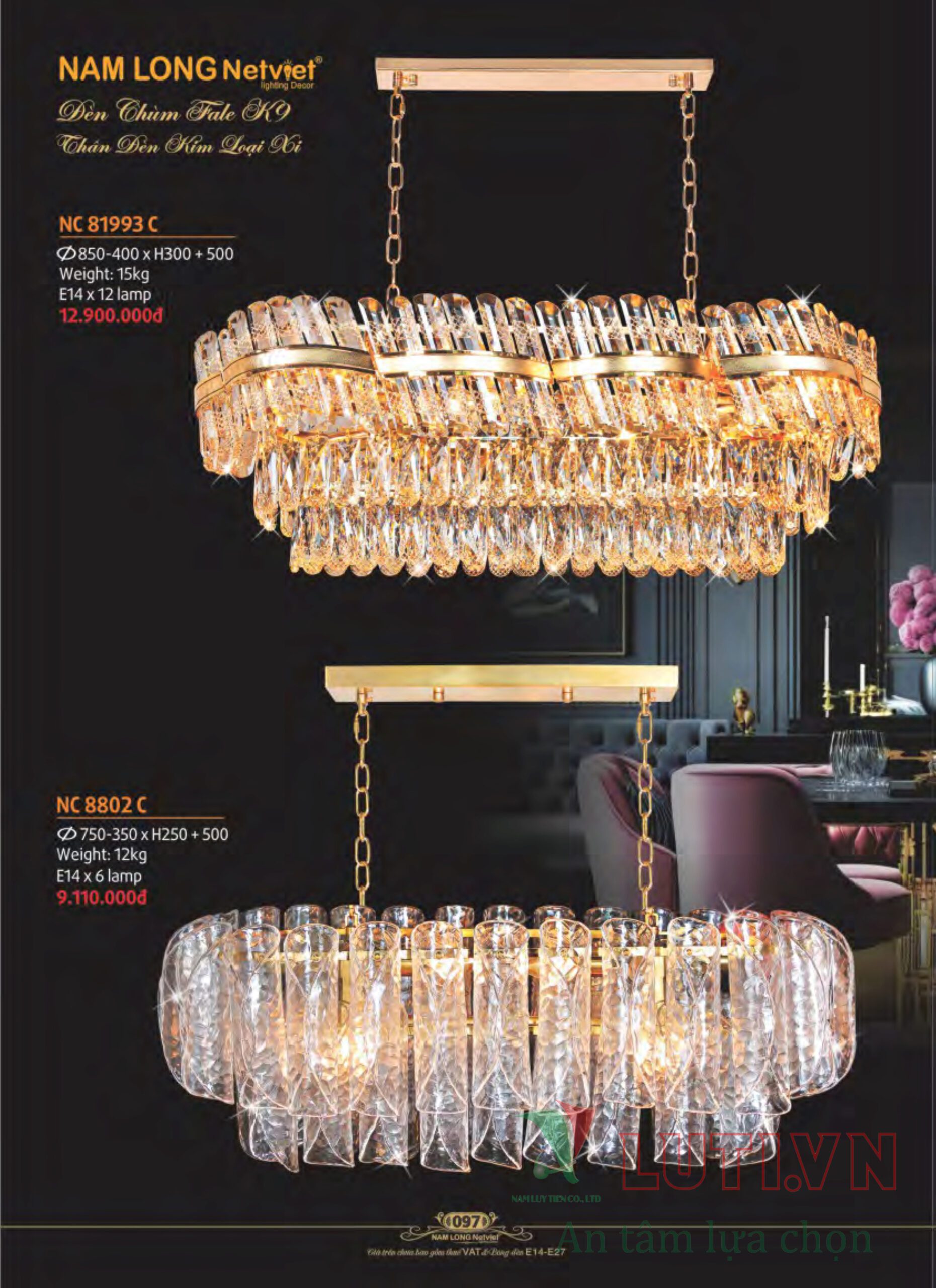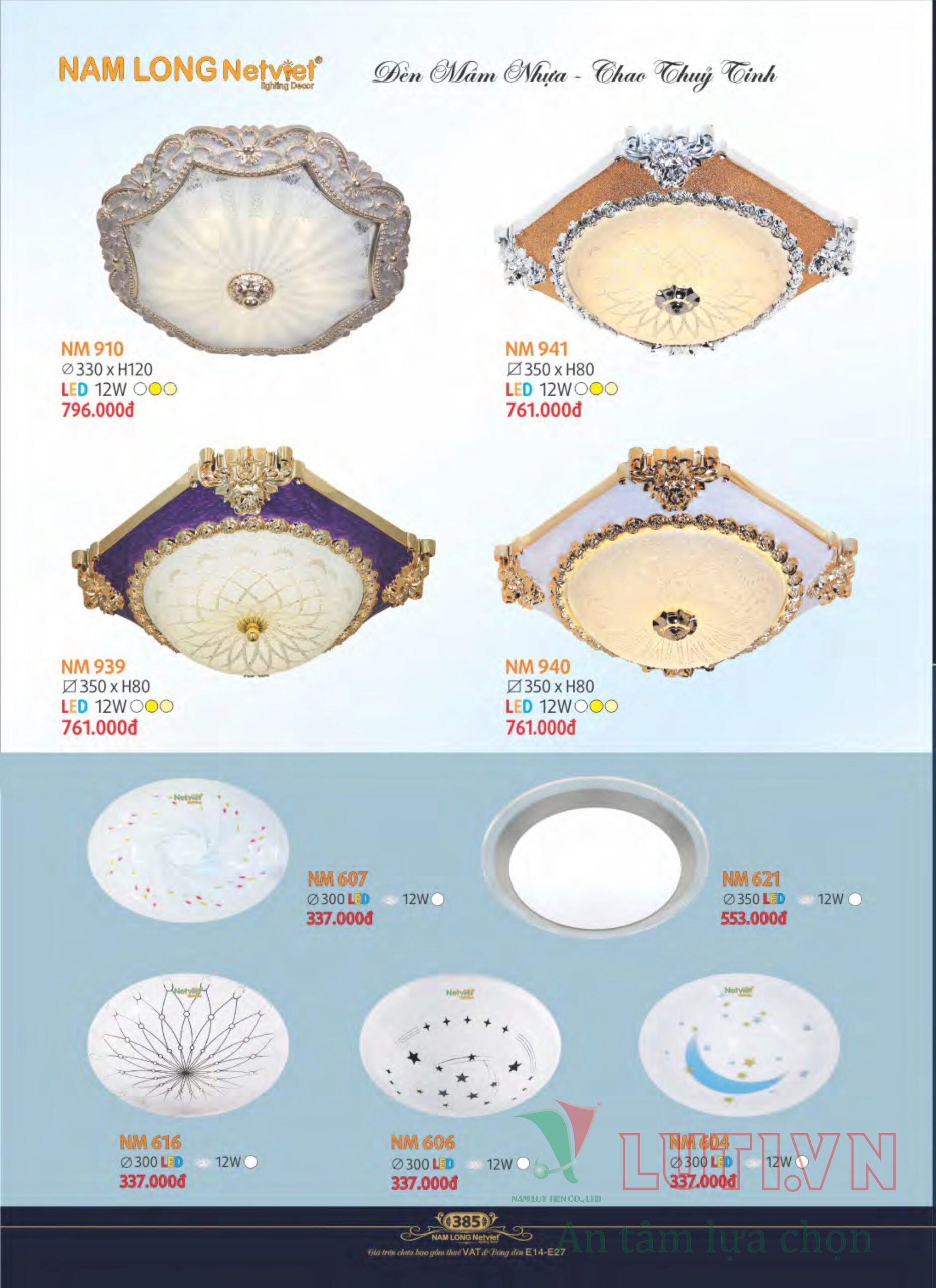 Catalogue - Bảng giáCATALOGUE BẢNG GIÁ ĐÈN TRANG TRÍ NAM LONG NĂM 2025 Công ty TNHH Nam Luỹ Tiến trân trọng gởi đến Quý khách hàng Catalogue Bảng giá đèn trang trí Nam Long năm 2025 Hân hạnh được phục vụ!