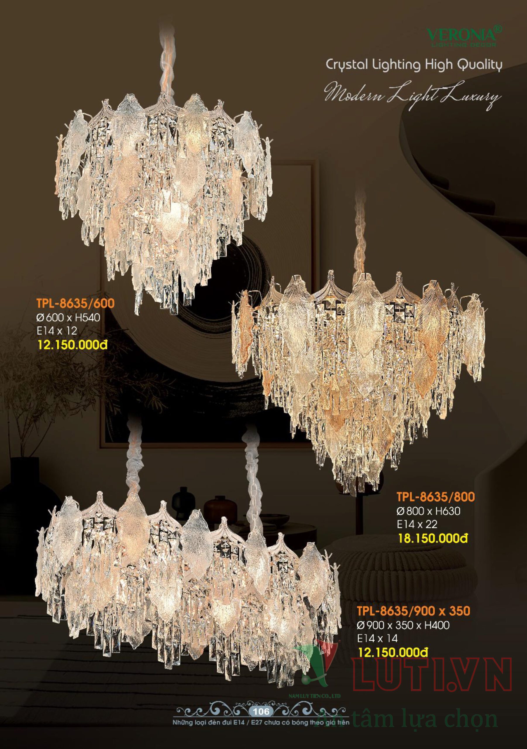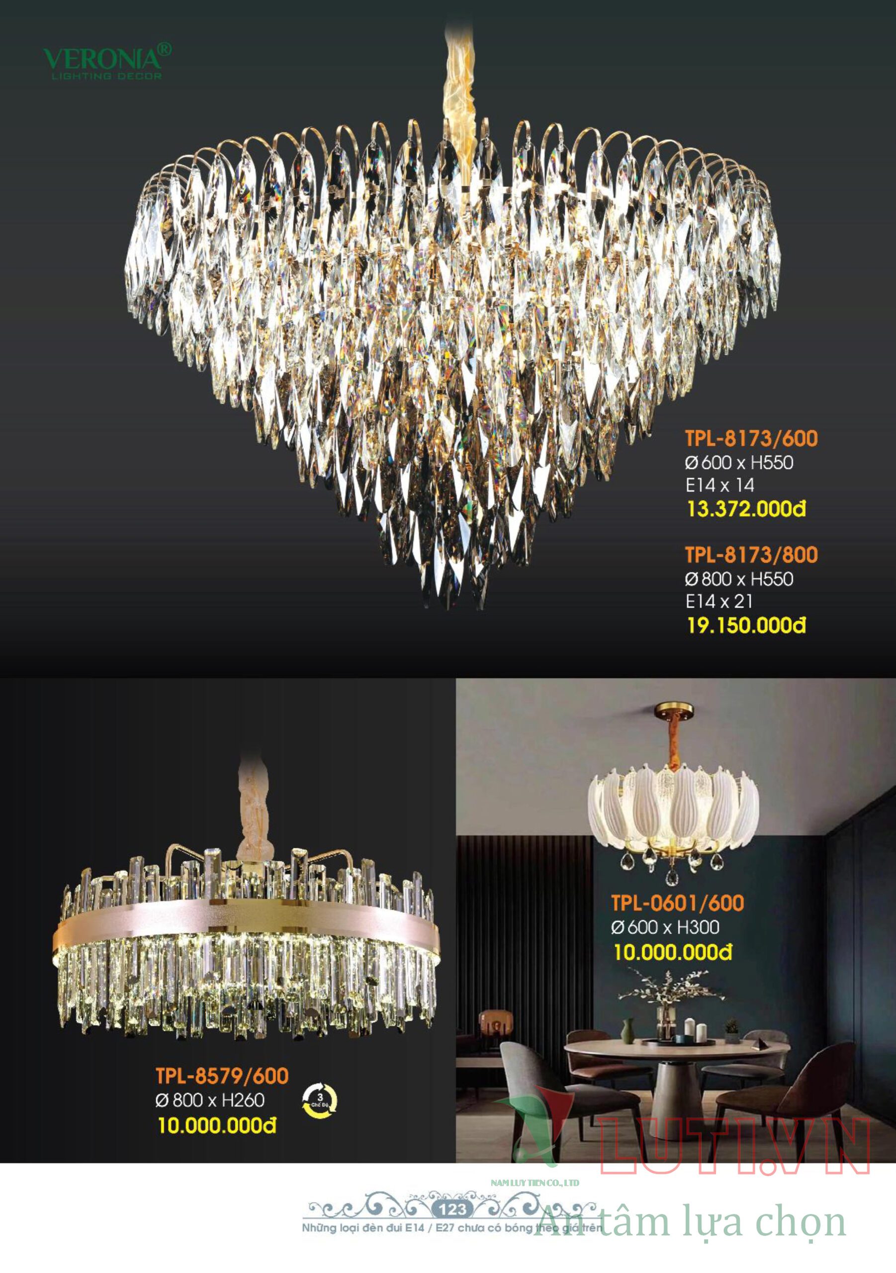 Catalogue - Bảng giáCATALOGUE BẢNG GIÁ ĐÈN TRANG TRÍ VERONIA 2026 Công ty TNHH Nam Luỹ Tiến trân trọng gởi đến Quý khách hàng Catalogue Bảng giá đèn trang trí Veronia 2026 mới nhất. Hân hạnh được phục vụ!